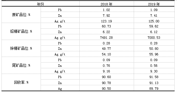 采礦廠將不同區(qū)域礦石分穿、分爆、分采、分裝、分運(yùn)、分堆在原礦堆場,選廠根據(jù)不同堆存區(qū)域的原礦性質(zhì)的不同和月采礦計(jì)劃來合理、靈活的入選礦石,并保證入選的礦石采用對應(yīng)的最佳工藝技術(shù)標(biāo)準(zhǔn)。此項(xiàng)工作于2019年正式實(shí)施,生產(chǎn)指標(biāo)有了大幅的提高,國森礦業(yè)混合入選(2018年)與分區(qū)域(2019年)選礦選礦指標(biāo)對比,具體見下表。